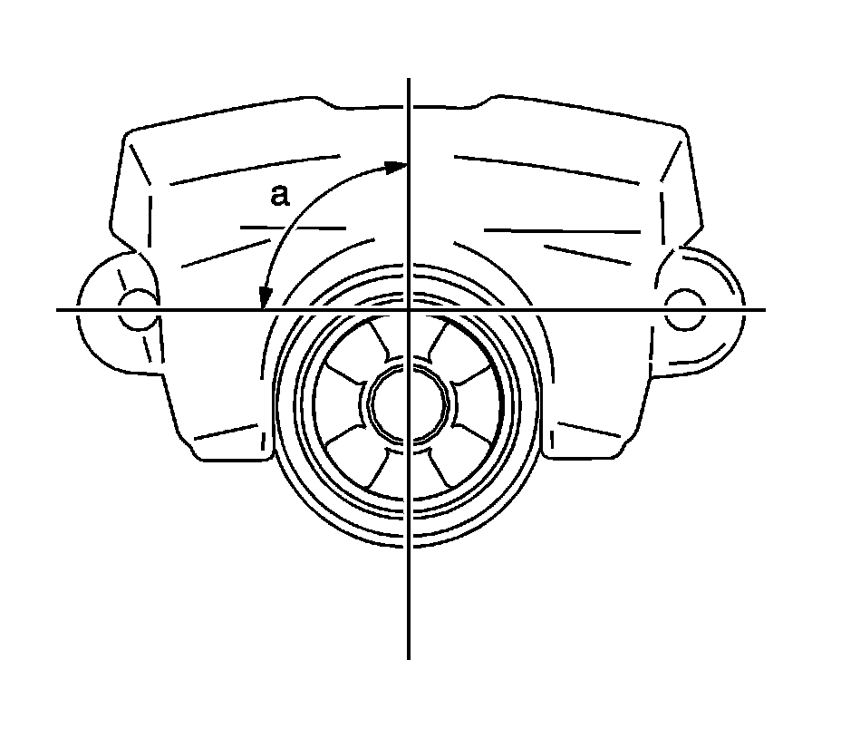 2. Turn the piston in order to align the piston groove 90 degrees (a) from the line between the caliper slide pin bores.