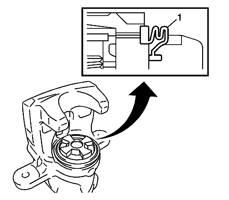 3. Ensure the cylinder boot (1) is installed in the groove of the piston. If necessary, refer to Rear Brake Caliper Overhaul (All Wheel Drive and GT) (Rear Brake Caliper Overhaul)Rear Brake Caliper Overhaul (Except All Wheel Drive and GT) (Rear Brake Caliper Overhaul).