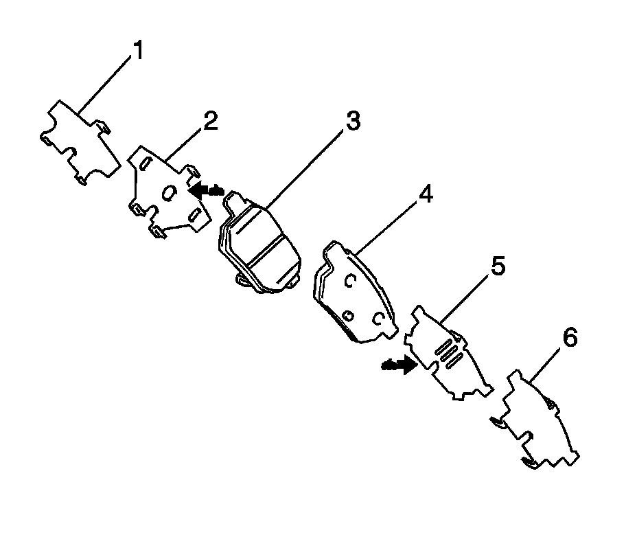 8. Remove the insulators (1, 2, 5, 6) from the pads (3, 4).