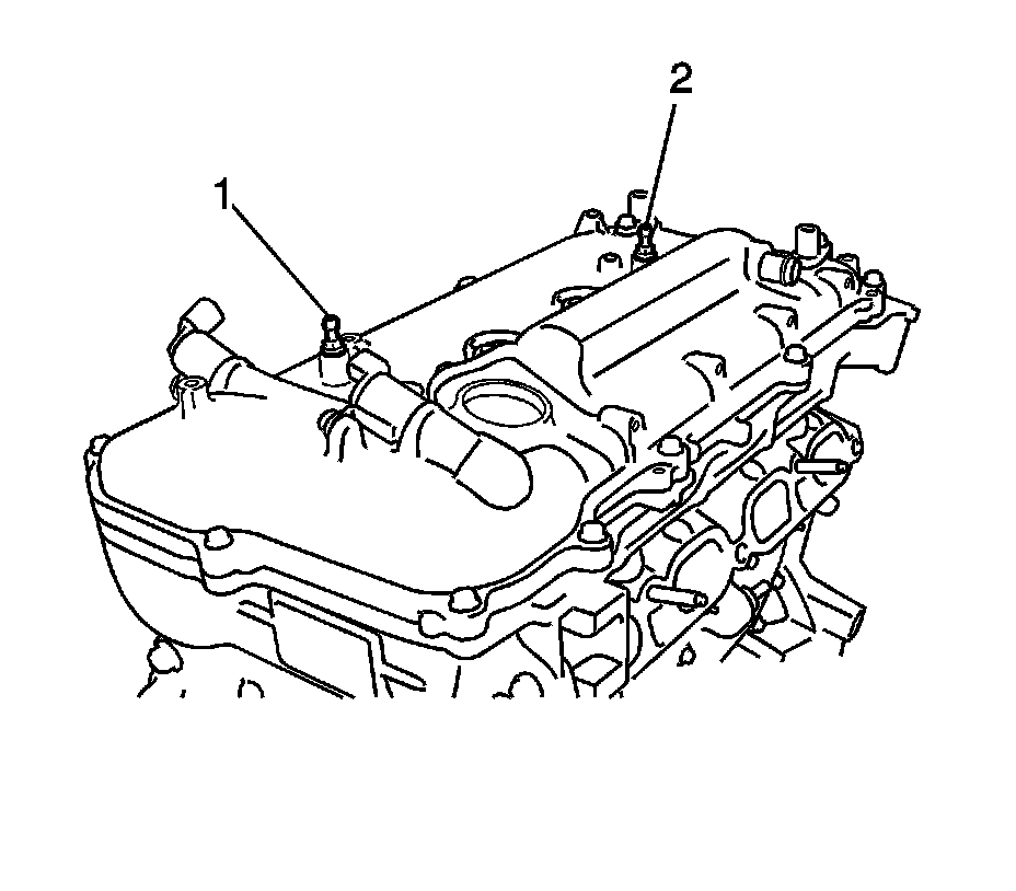 8. Install the 2 sensors with the 2 bolts (1, 2) and tighten to 10 Nm (7 lb ft).