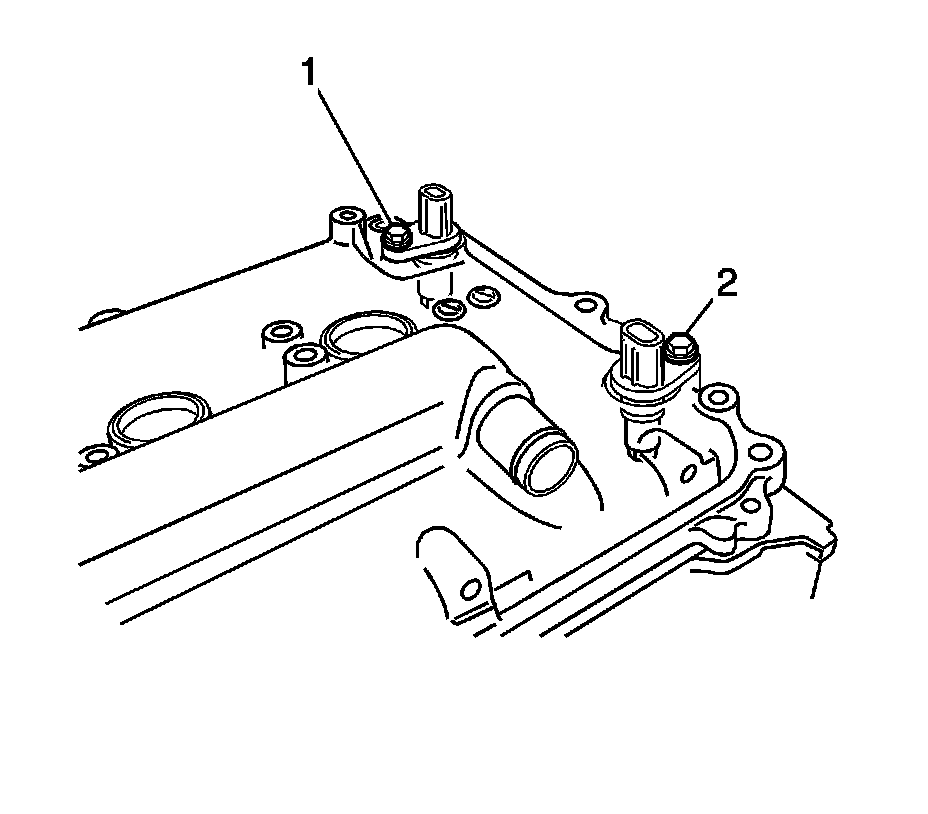 7. Remove the 2 bolts (1, 2) and 2 camshaft position sensors.