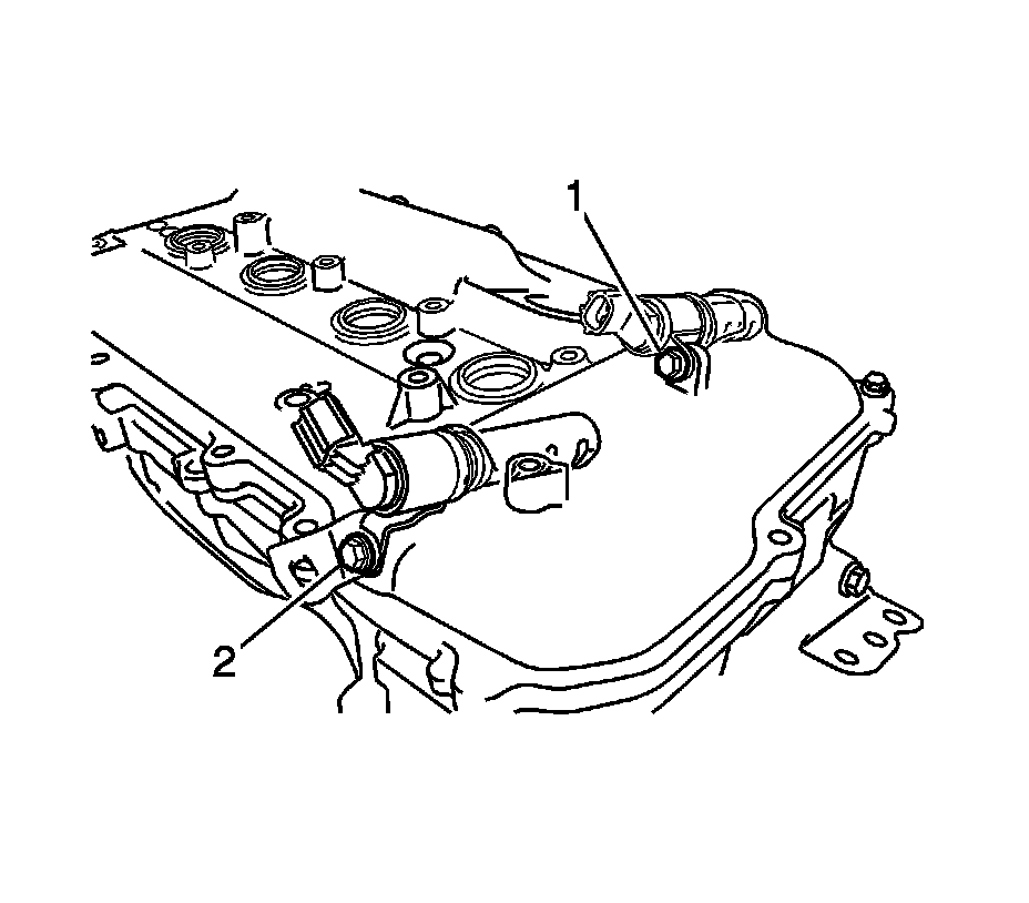5. Install the 2 camshaft timing oil control valves and bracket with the 2 bolts (1, 2) and tighten to 10 Nm (7 lb ft).