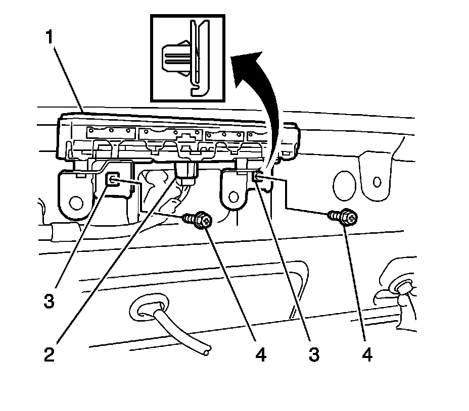 4. Disengage the clips (3) and remove the high mount stop lamp (1).