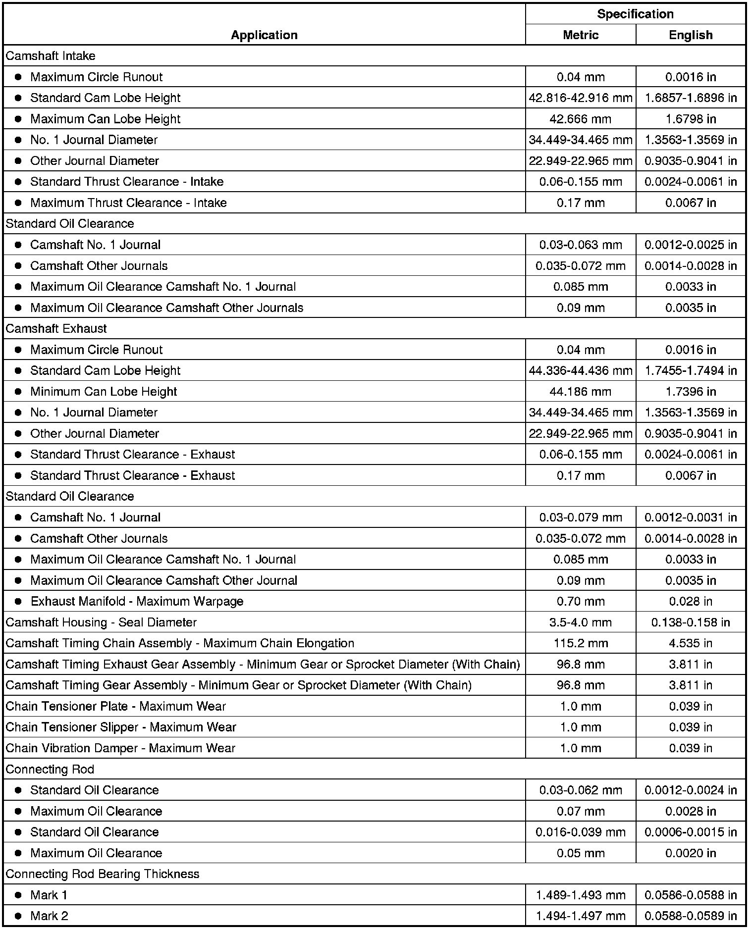 Engine Mechanical Specifications