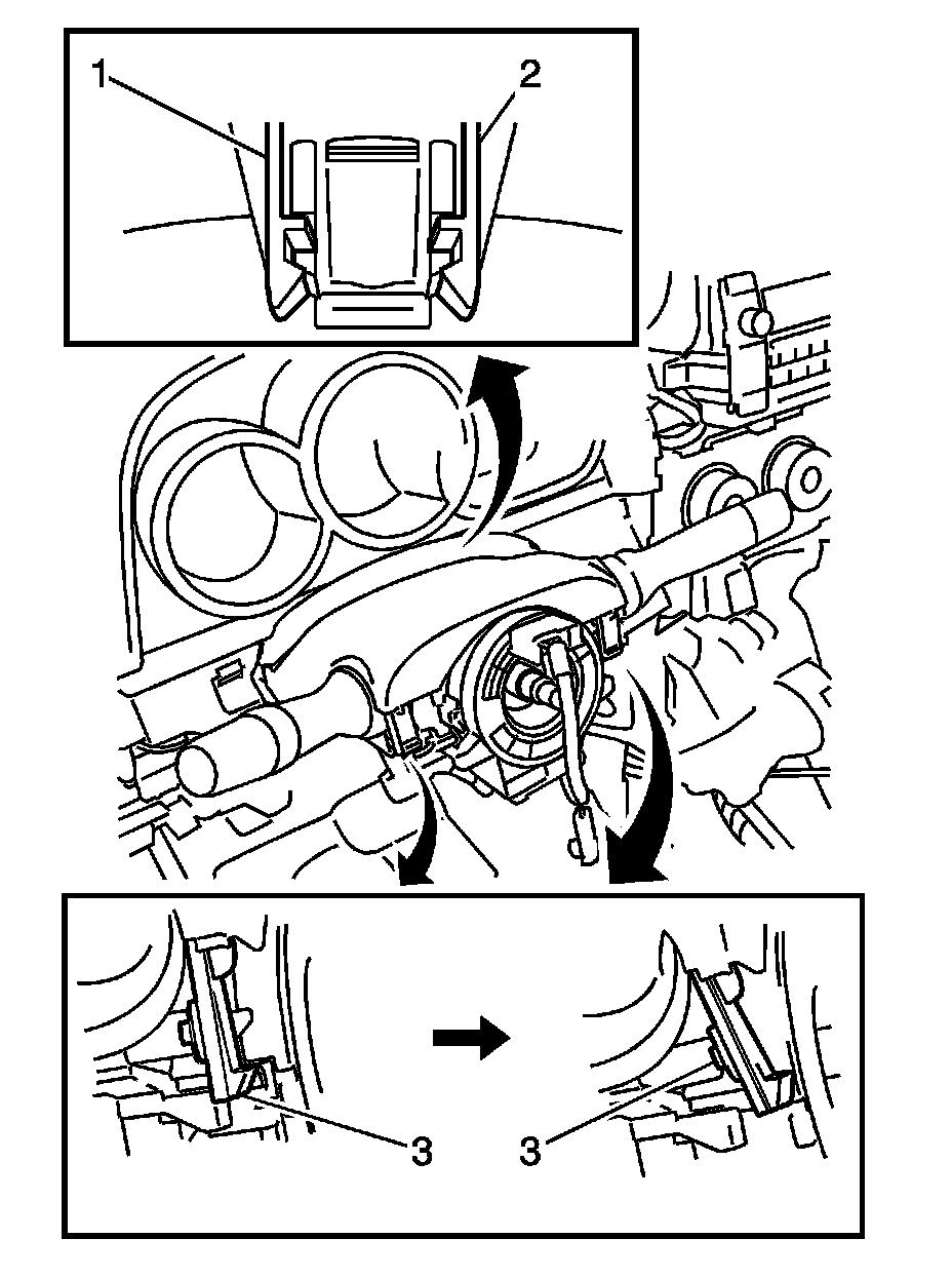 6. Disengage the claws (1, 2, 3) and remove the upper steering column trim cover.