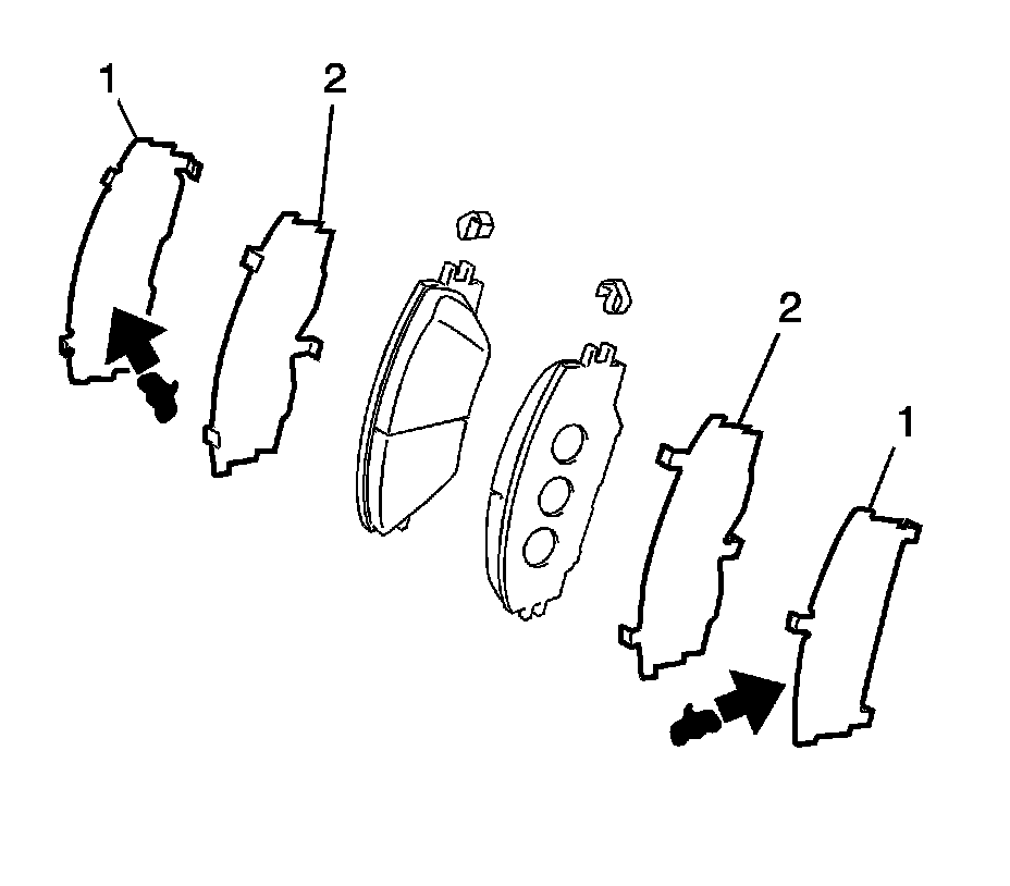 2. Clean and inspect the disc brake hardware. Replace components if necessary. Refer to Front Disc Brake Mounting and Hardware Inspection (Component Tests and General Diagnostics).