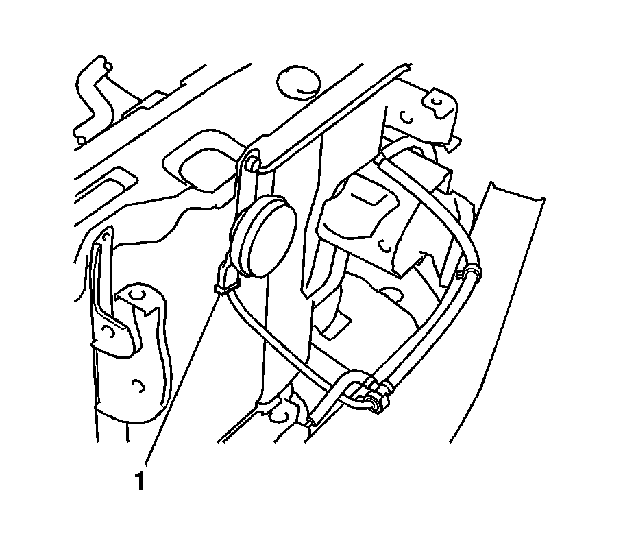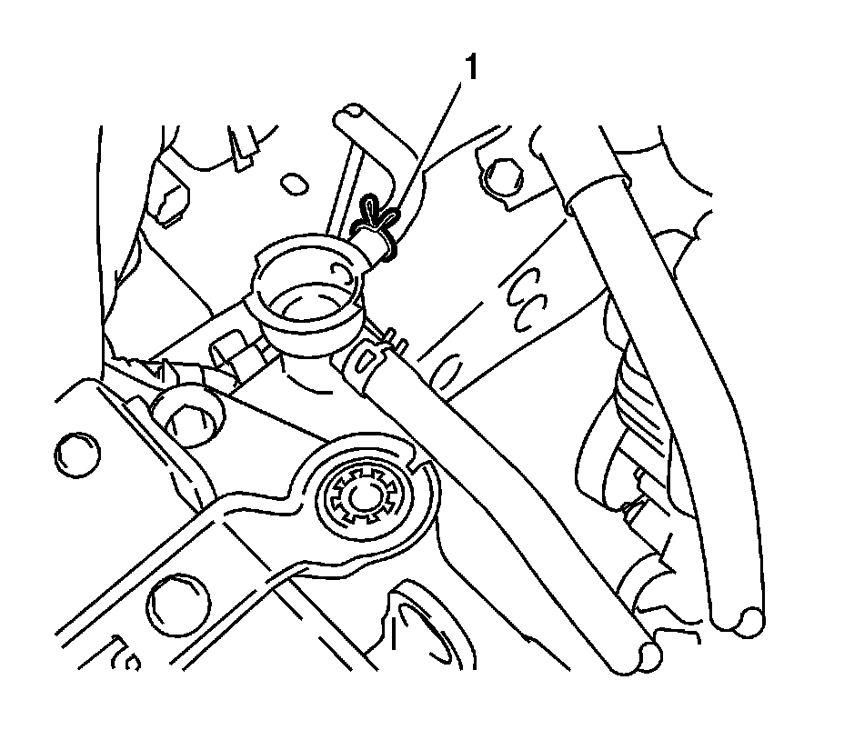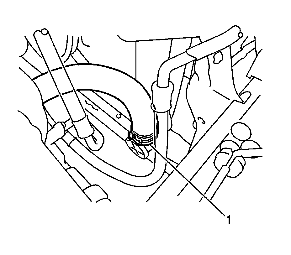 8. Disconnect the radiator reservoir tank hose (1) from the radiator assembly.