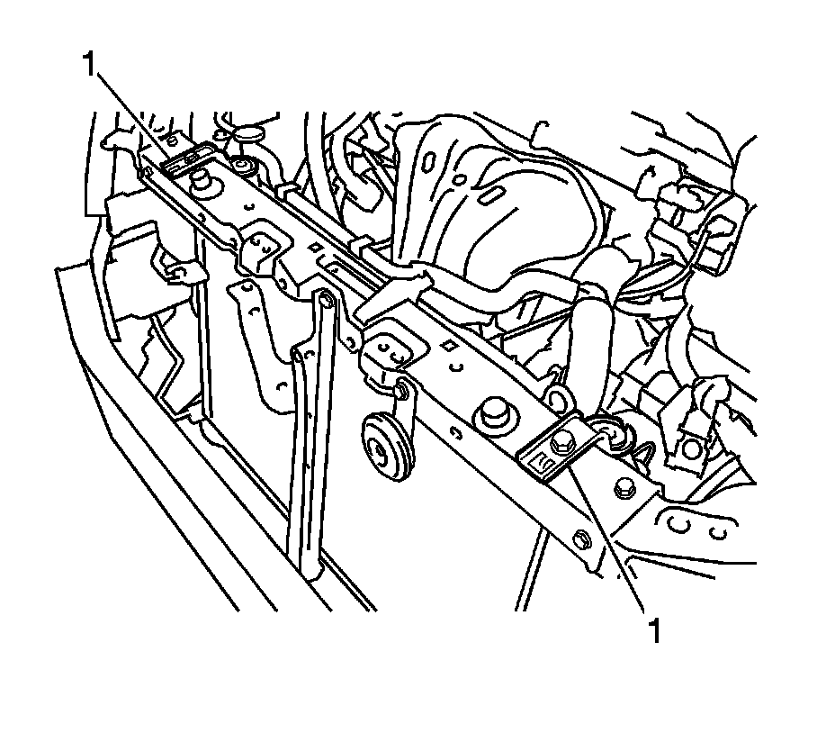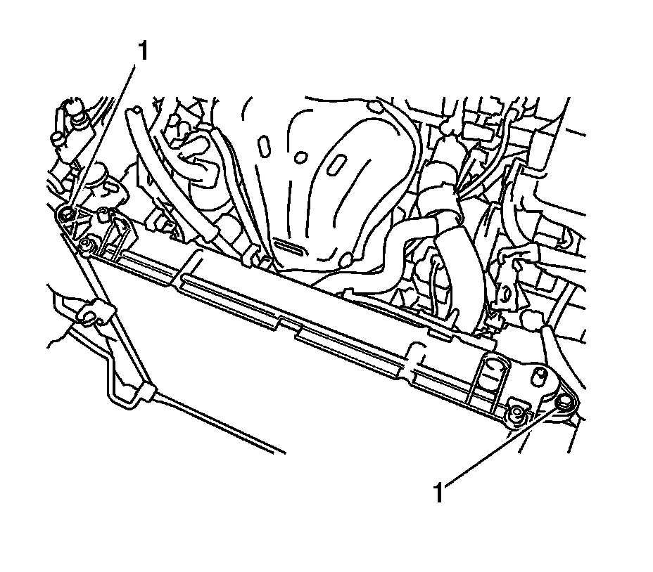19. Install the 2 upper radiator supports with the 2 bolts (1) and tighten to 19 Nm (14 lb ft).