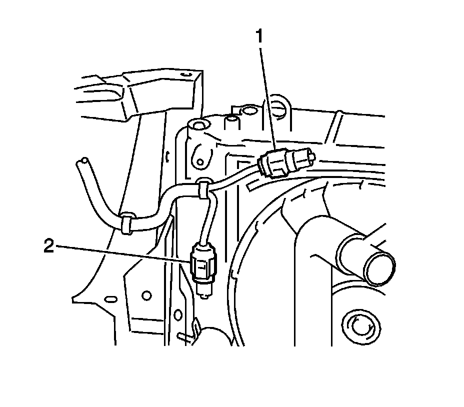 25. Disconnect the 2 oil cooler hoses (1, 2) from the radiator.