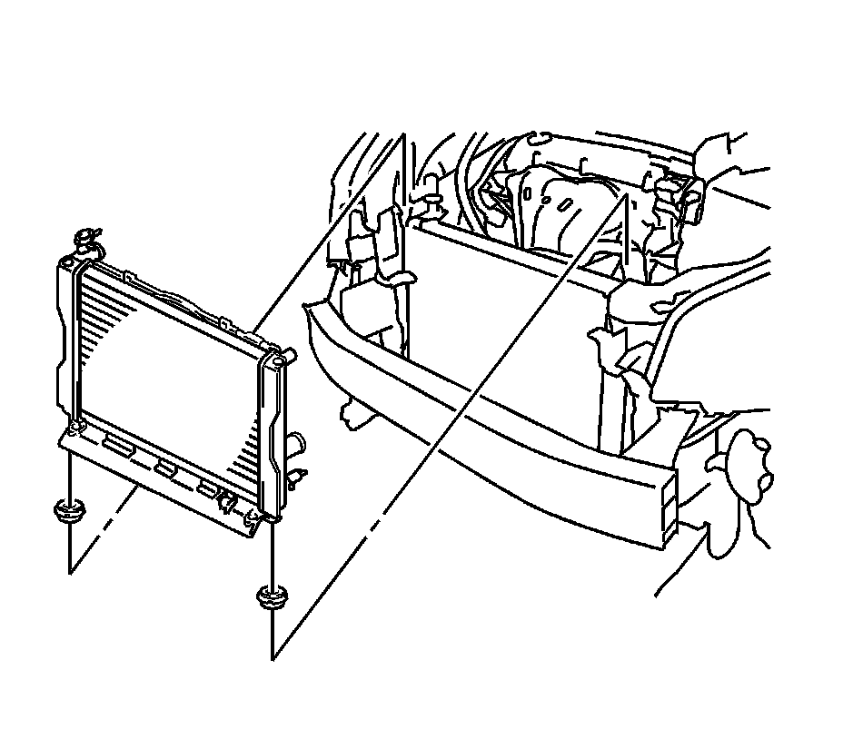 18. Install the 2 radiator support cushions to the 2 upper radiator supports.