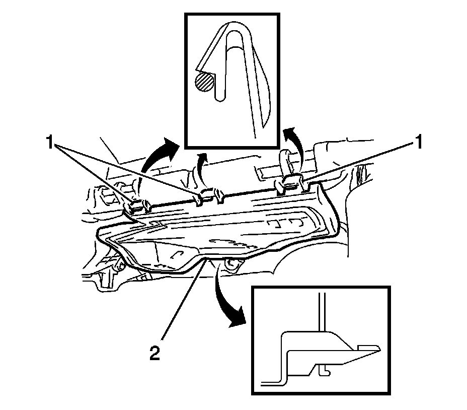 1. Disengage the three clips (1) and guide (2) from the lower instrument panel cover.