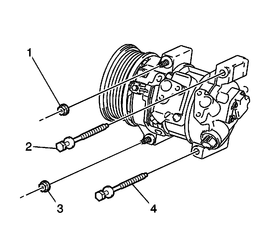 9. Install the lower bolt (4) to the compressor.