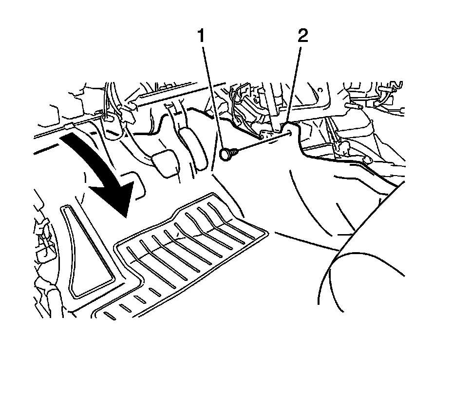 21. Install the center bolt (2) to the instrument panel reinforcement.