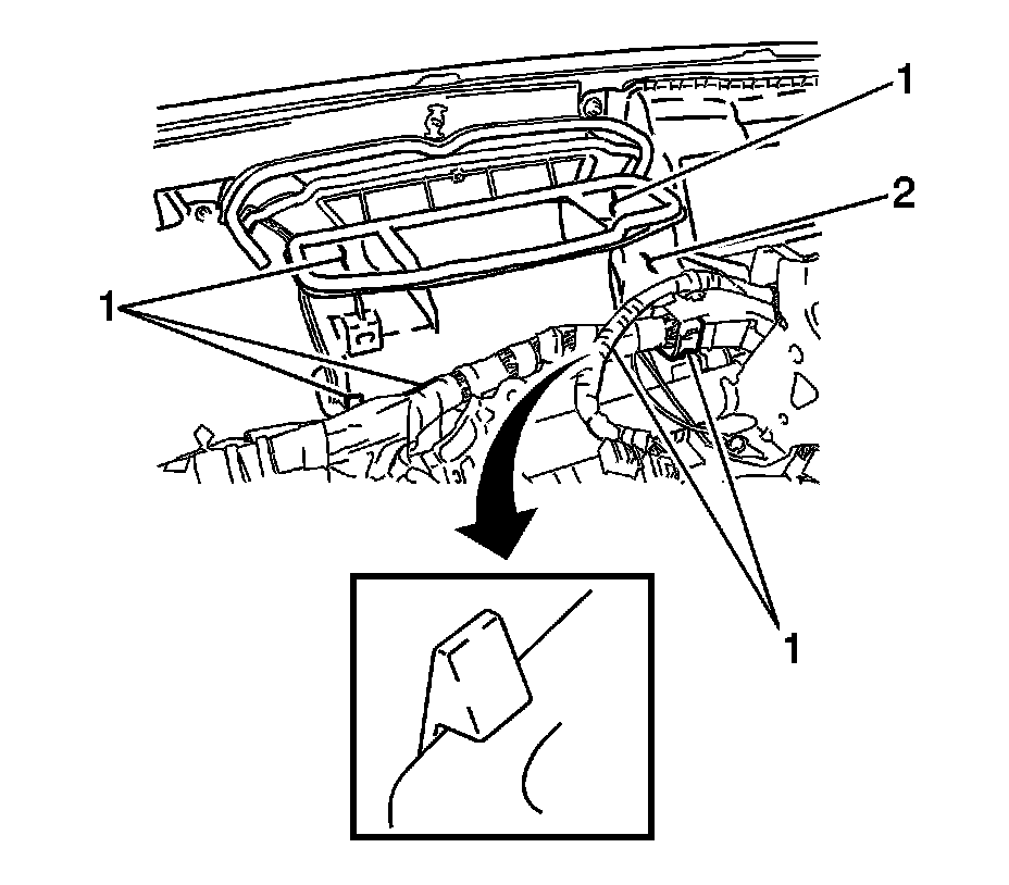 48. Disengage the clamps (1) from the PTC quick heater harness, if equipped.