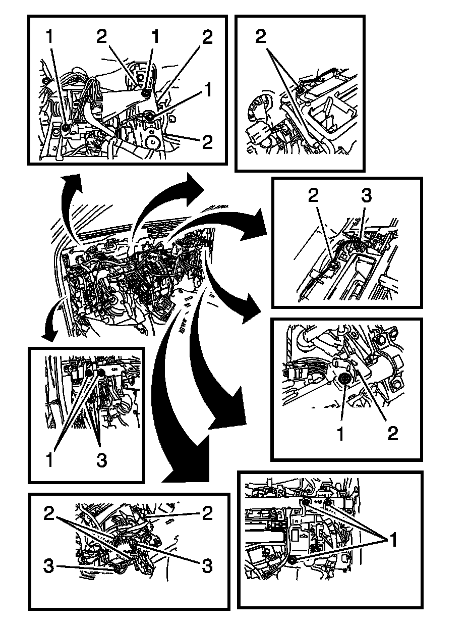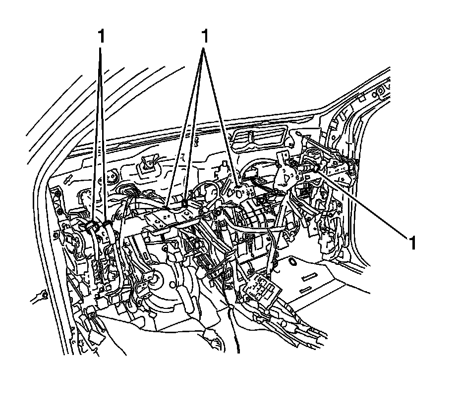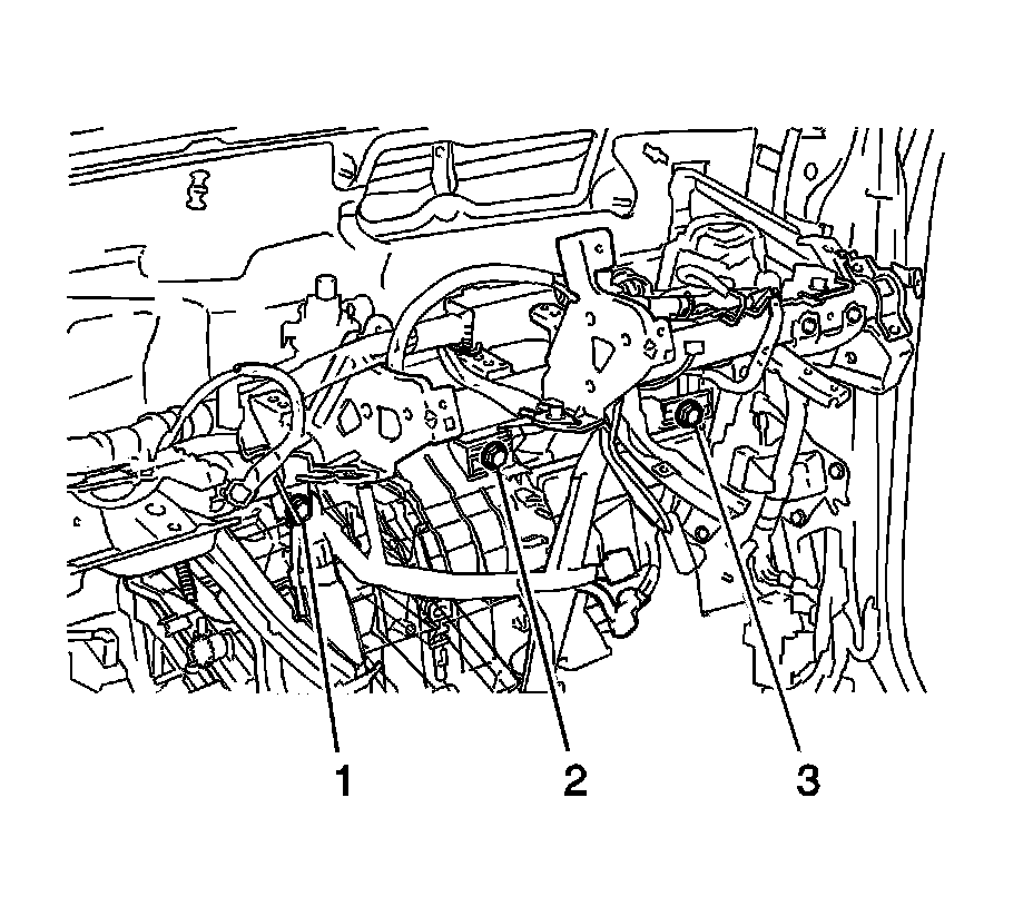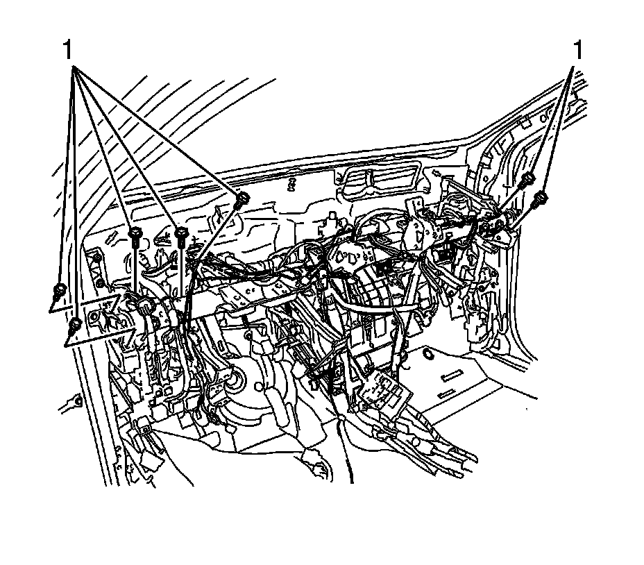 8. Remove the instrument panel assembly. Refer to Instrument Panel Upper Trim Pad Replacement (Service and Repair) and Instrument Panel Lower Trim Panel Replacement (Service and Repair).