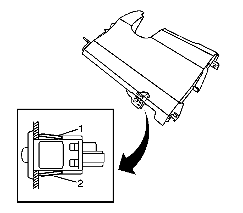4. Disengage the 2 tabs (1, 2) and remove the tire pressure indicator reset switch from the instrument panel lower trim panel.