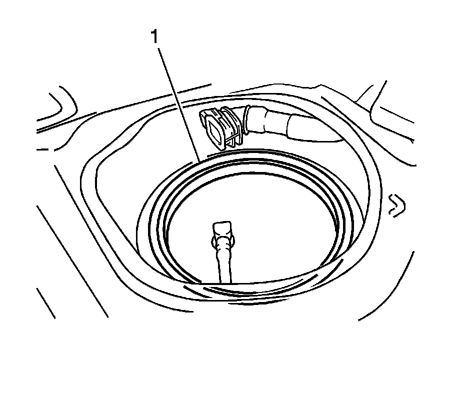 17. Remove the gasket (1) from the fuel tank.
