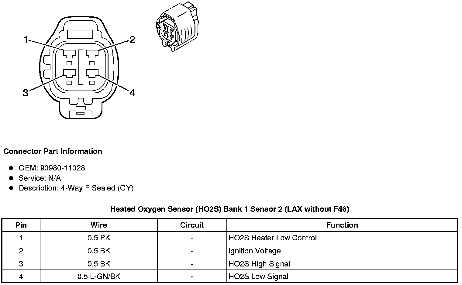 Heated Oxygen Sensor (HO2S) Bank 1 Sensor 2 (LAX without F46)