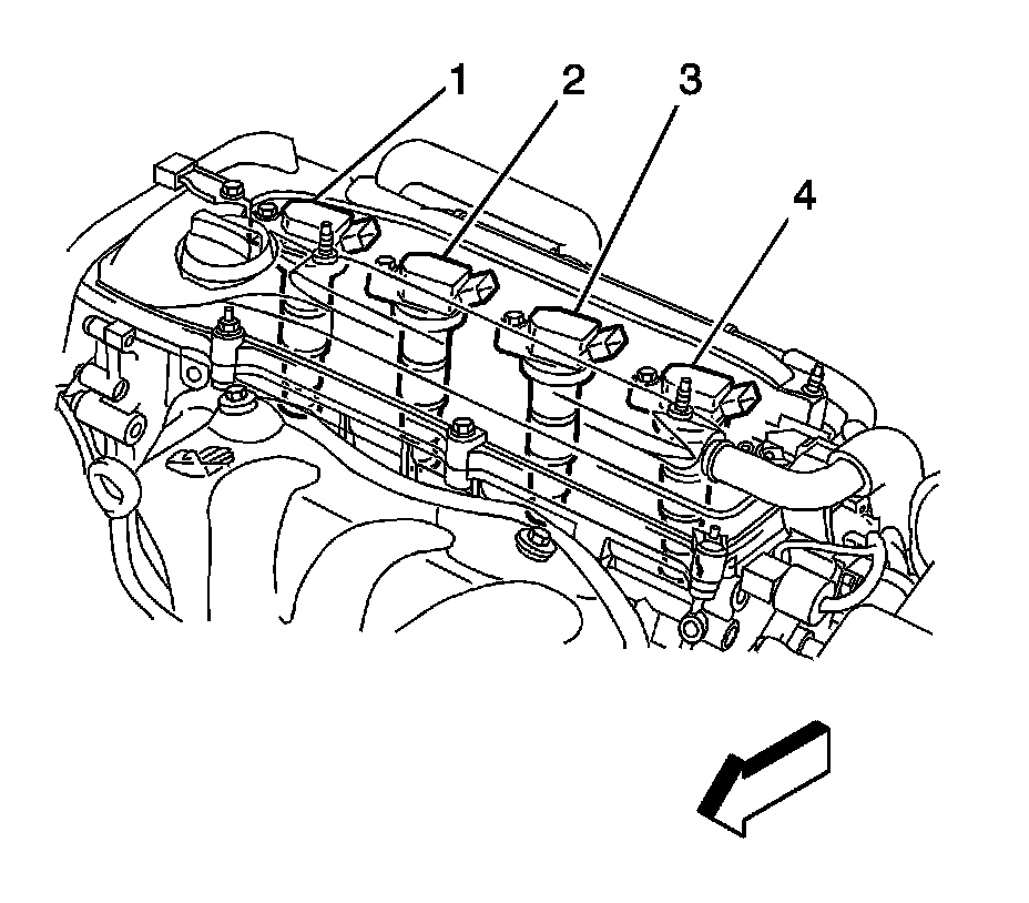 * The ignition coils secondary output voltage is more than 40,000 volts. Avoid body contact with the ignition high voltage secondary components when the engine is running or personal injury may result.