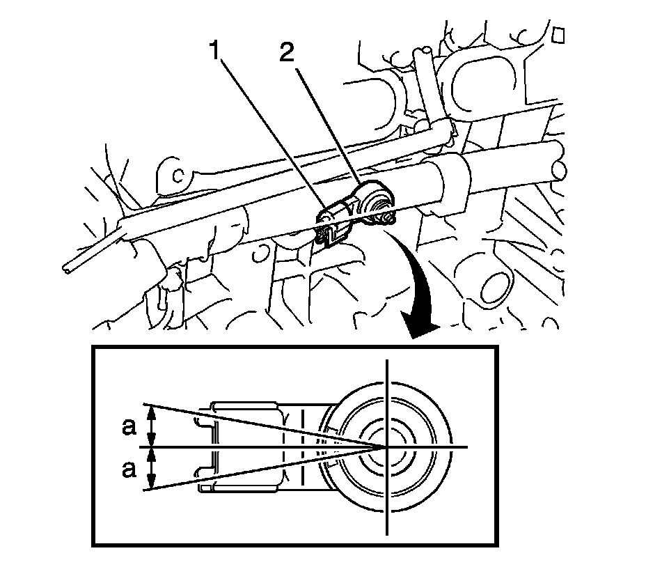 1. Install the knock sensor (2) with the nut and tighten to 20 Nm (15 lb ft).