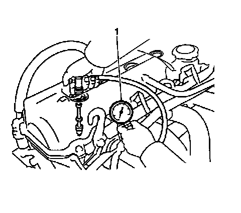8. Install a compression gauge (1) into a spark plug hole.