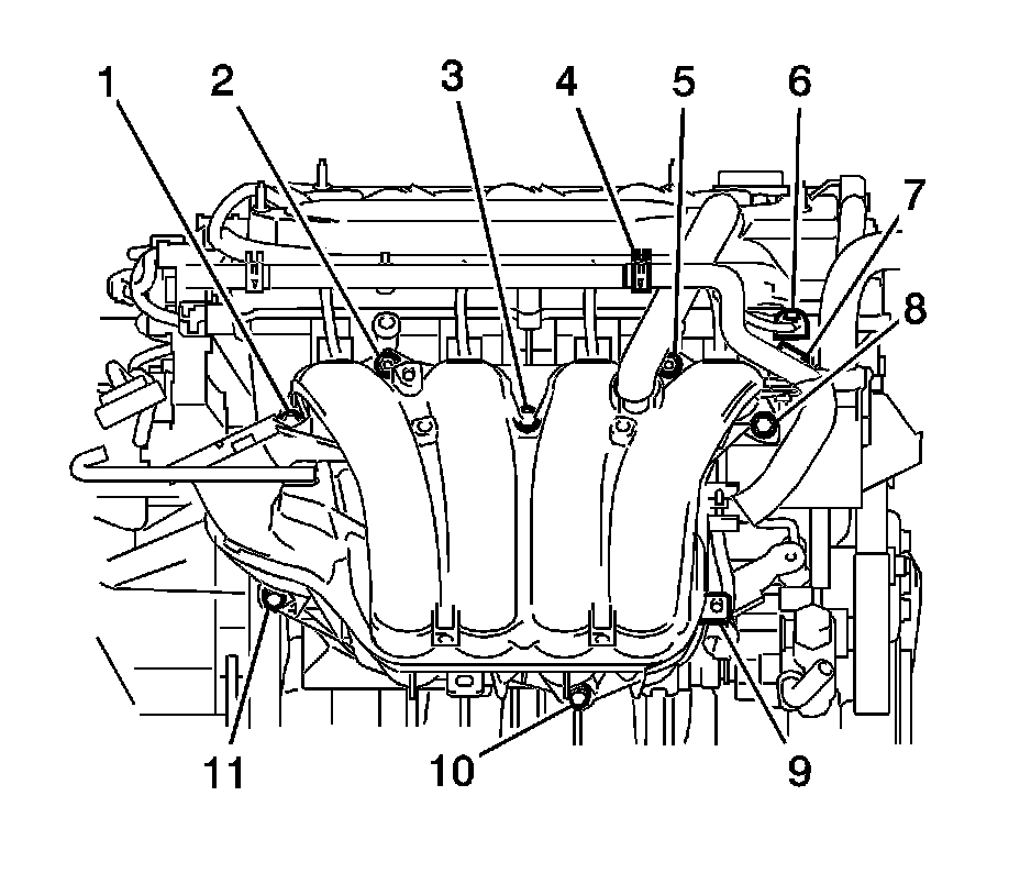 with the 5 bolts (1, 3, 8, 10, 11) and 2 nuts (2, 5) and tighten to