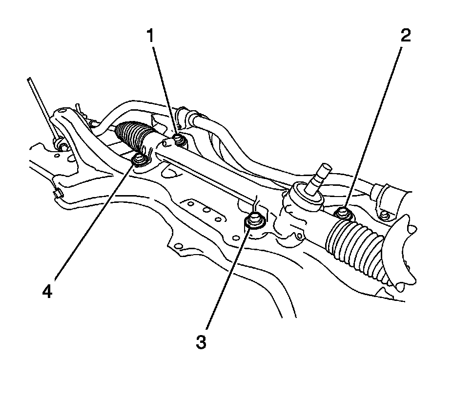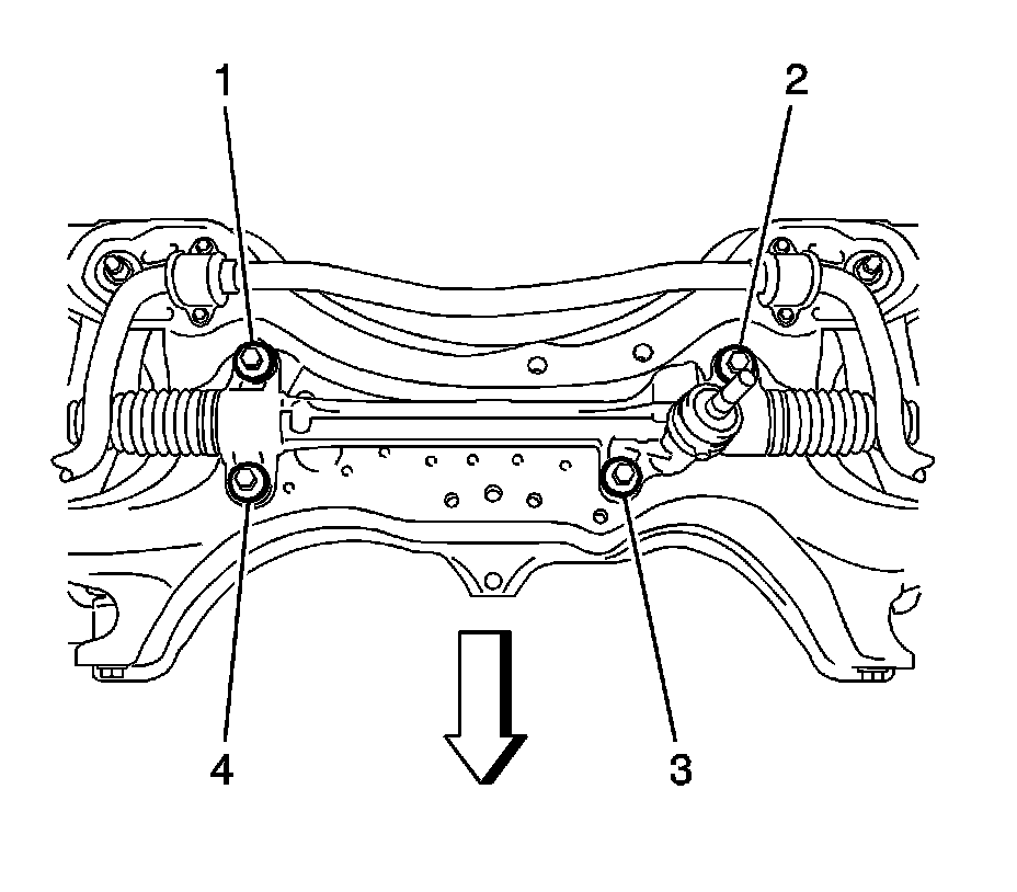 30. Remove the 4 bolts (1, 2, 3, 4) and the steering gear from the front suspension crossmember.