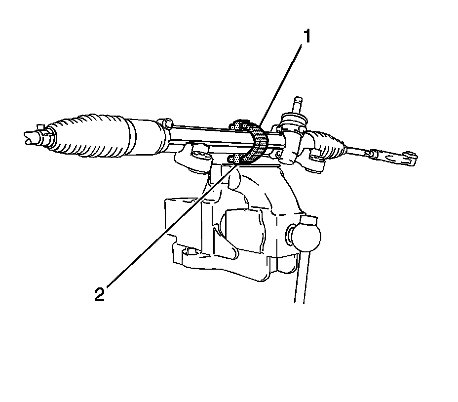 13. Use paint in order to place match marks (2) on the tie rod ends and on the inner tie rods.