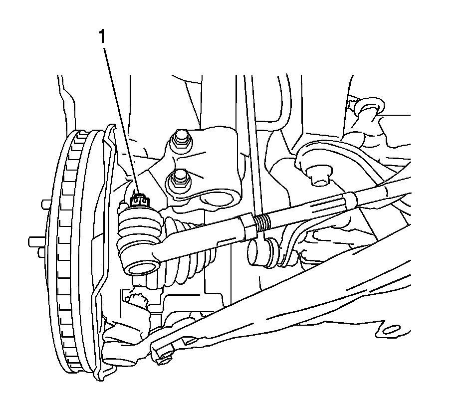 15. Loosen the left side tie rod end nut (1).