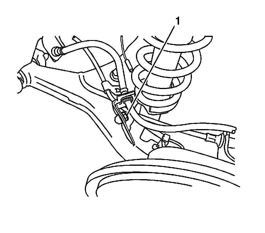 5. Remove the bolt (1) from the left rear speed sensor wire clamp.