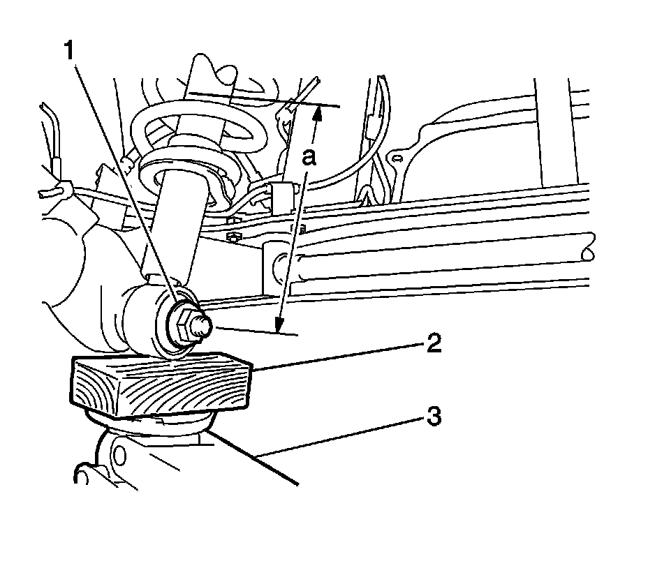24. Ensure the shock absorbers and the coil springs are compressed to the specification. If necessary, use blocks of wood (2) and jacks (3) in order to raise the rear axle. If necessary, add weight, or even add an assistant to the rear seat.