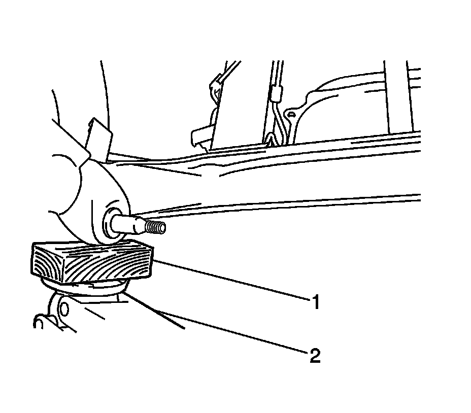 3. Raise and support the rear axle with blocks of wood (1) and jacks (2).