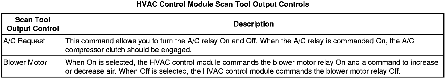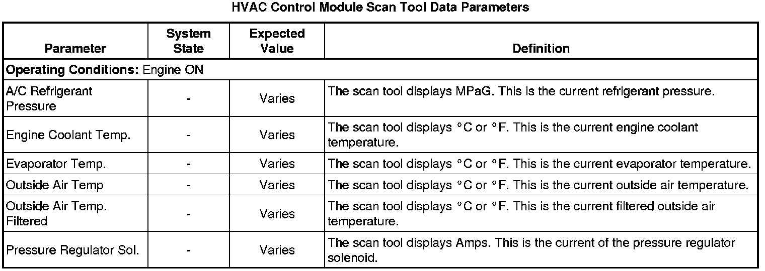 Heating, Ventilation and Air Conditioning Control Module Scan Tool Information