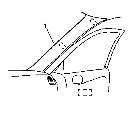 9. Install the windshield side garnish moldings (1). Refer to Windshield Pillar Garnish Molding Replacement (Without Roof Side Rail Restraint) (Service and Repair)Windshield Pillar Garnish Molding Replacement (With Roof Side Rail Restraint) (Service and Repair).