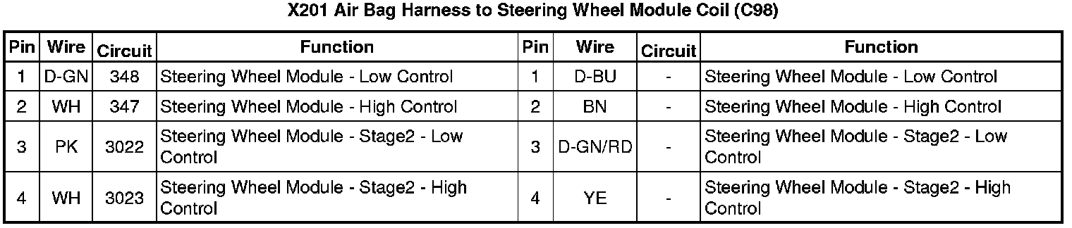 X201 Air Bag Harness to Steering Wheel Module Coil (C98)