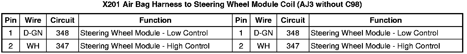 X201 Air Bag Harness to Steering Wheel Module Coil (AJ3 without C98)