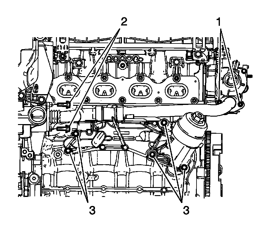 6. Remove the oil cooler tightening bolts (3).