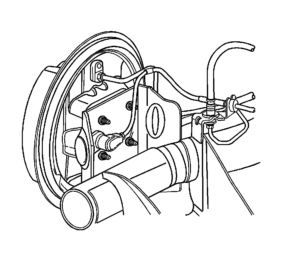 17. Remove the remaining drum brake components from the axle. Refer to Rear Brake Backing Plate Replacement (Service and Repair).