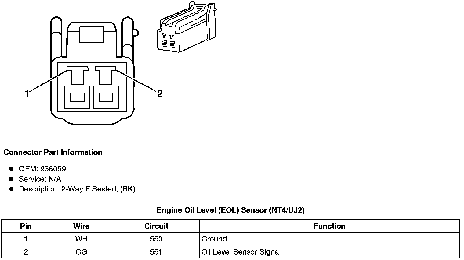 Engine Oil Level (EOL) Sensor (NT4/UJ2)