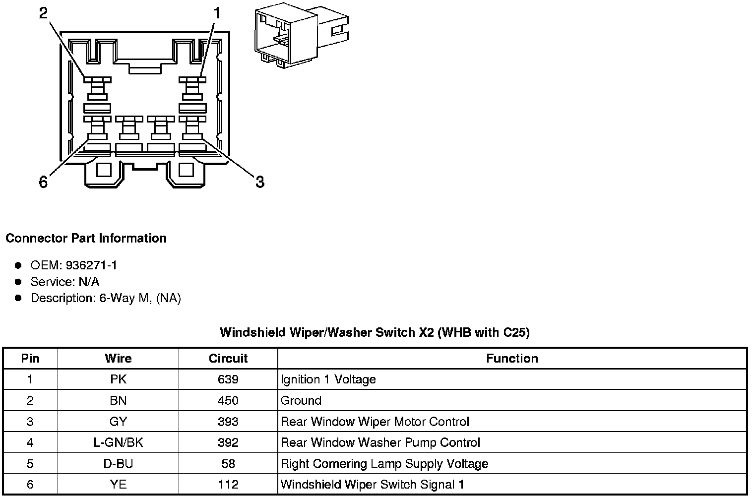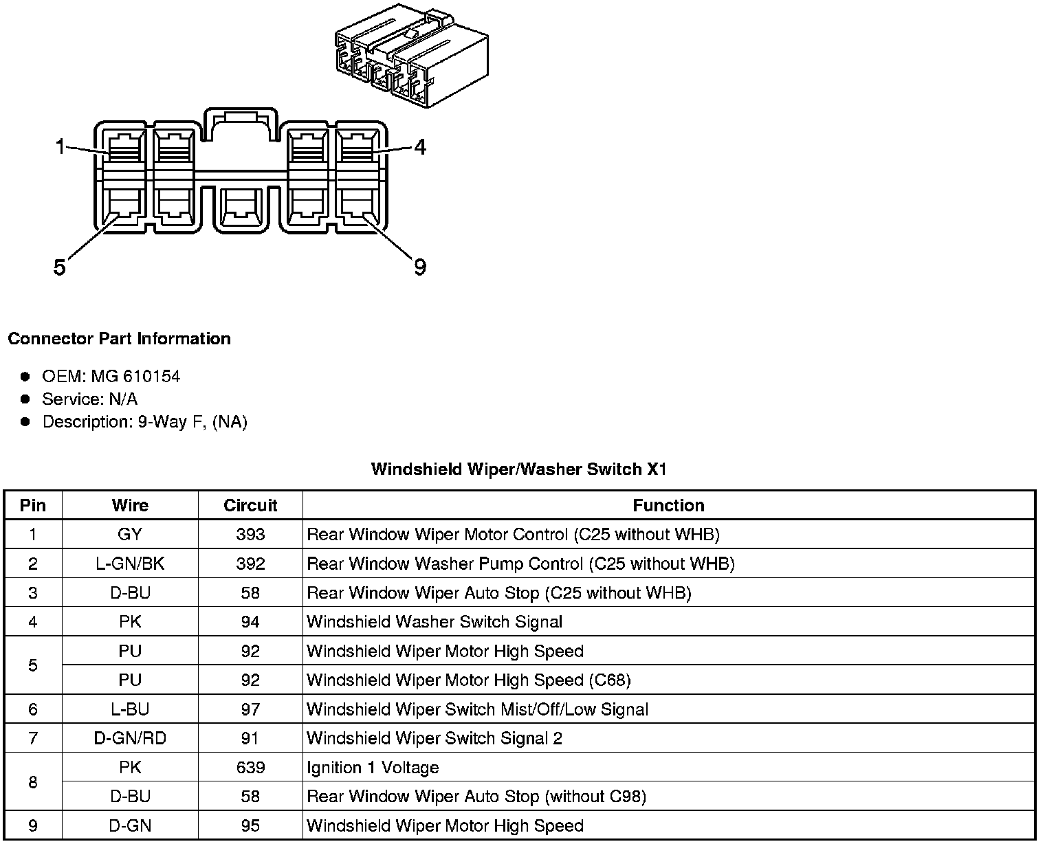 Windshield Wiper/Washer Switch X2 (WHB with C25)