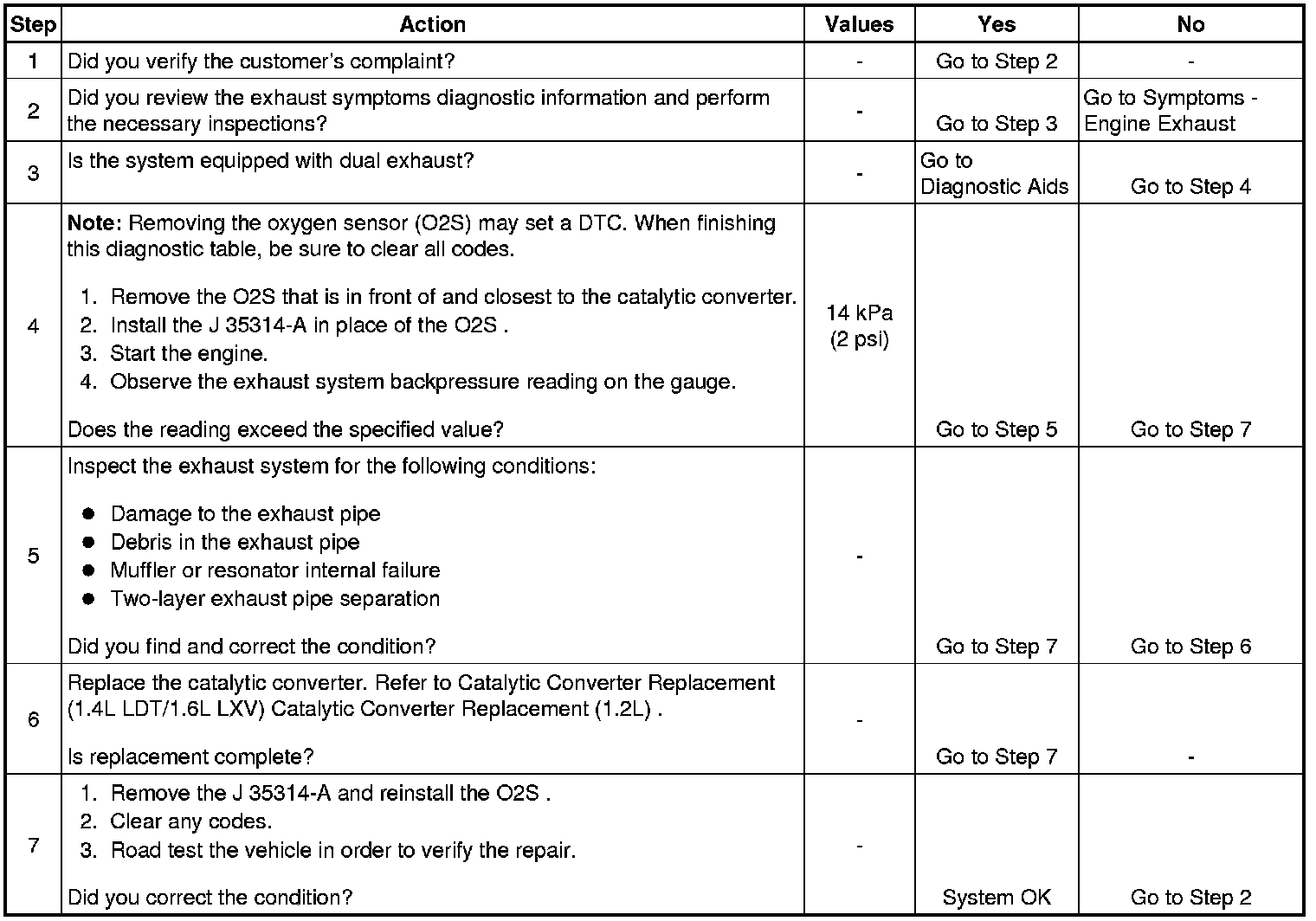 Note: Removing the O2S sensor may set a DTC. When finishing this diagnostic table, be sure to clear all codes.