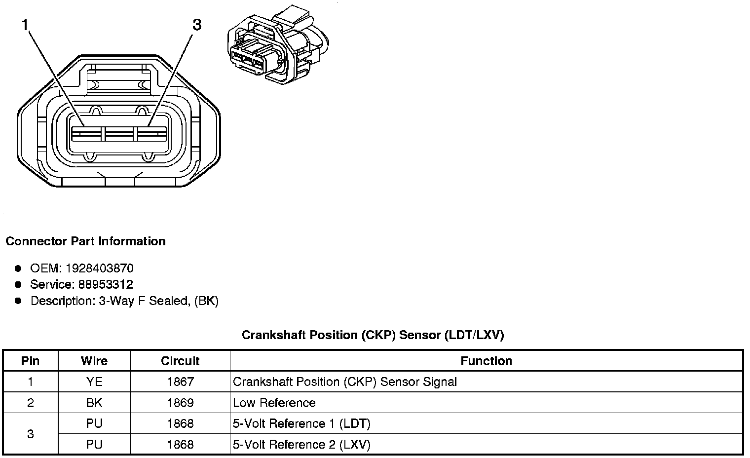 Crankshaft Position (CKP) Sensor (LDT/LXV)