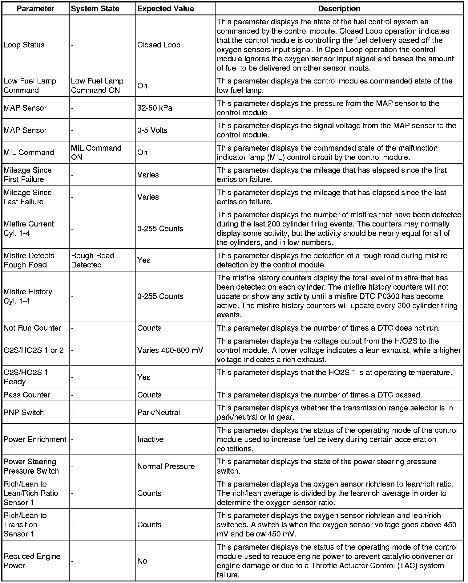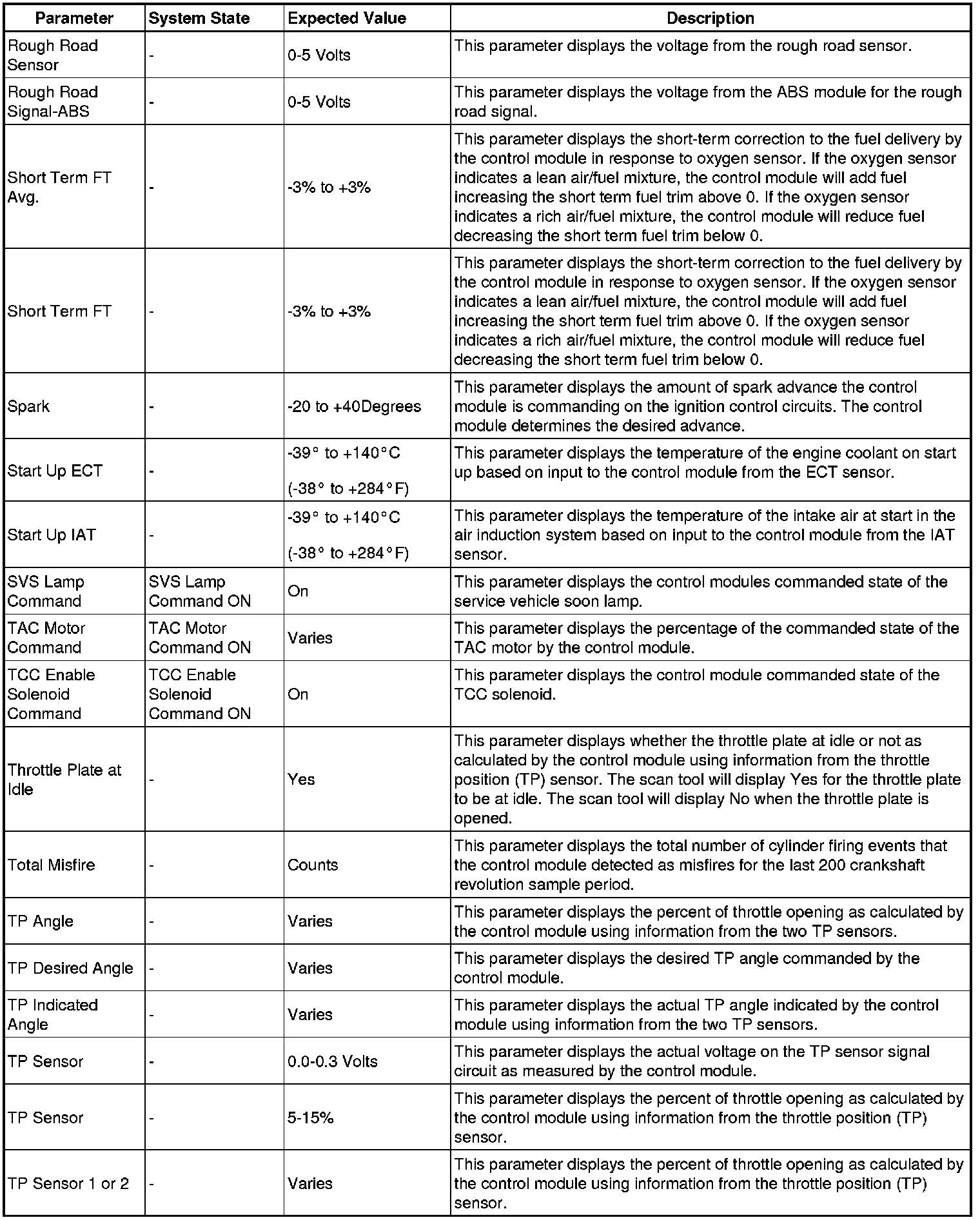 Only the parameters listed below are referenced in this service manual for use in diagnosis.