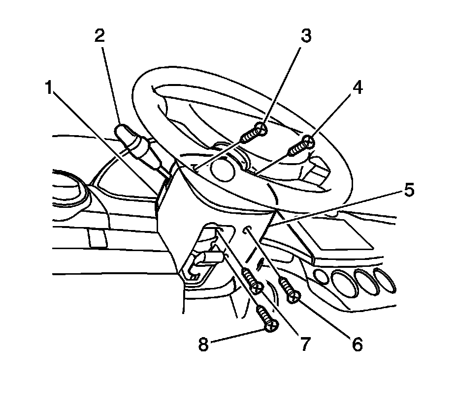 2. Remove the screws (6, 7, 8) and the lower steering column cover panel (5).