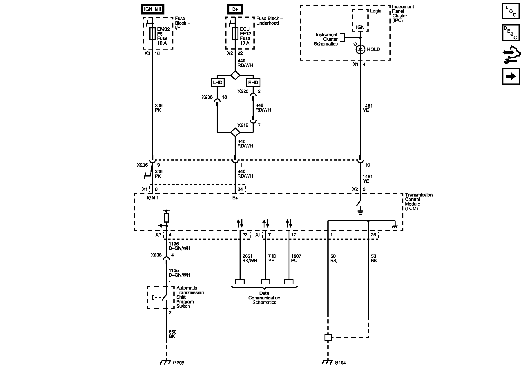 Power, Ground, Serial Data, Shift Program Switch (without WHB)