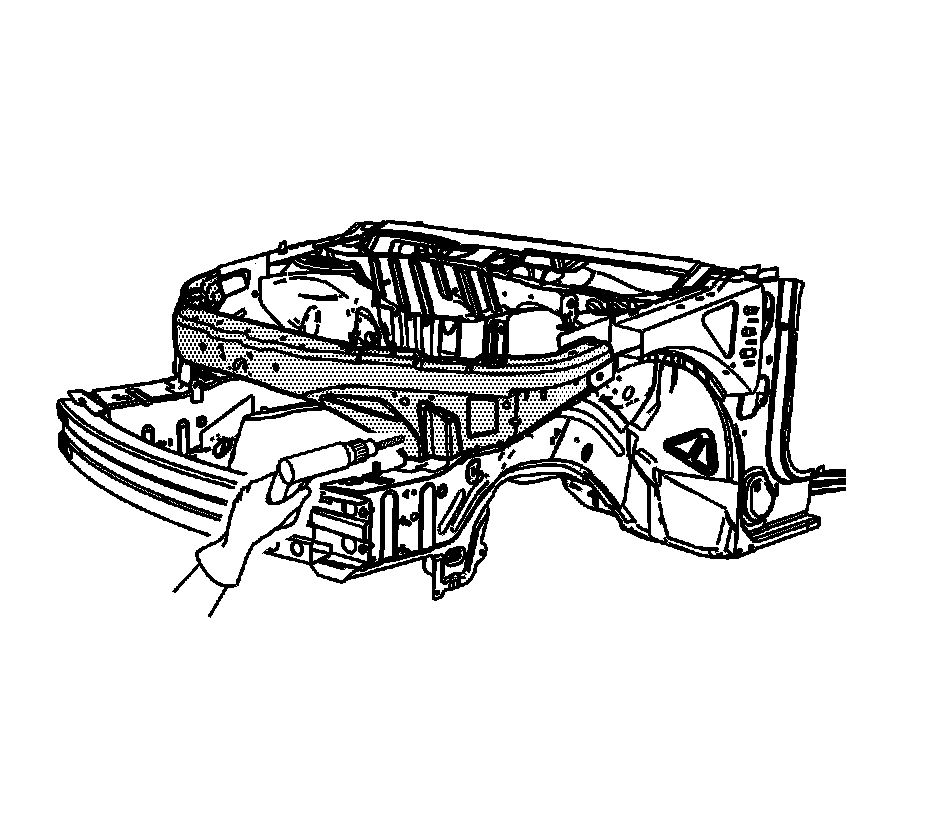10. Apply GM-approved Weld-Thru Coating or equivalent to all mating surfaces. Refer to Anti-Corrosion Treatment and Repair ().