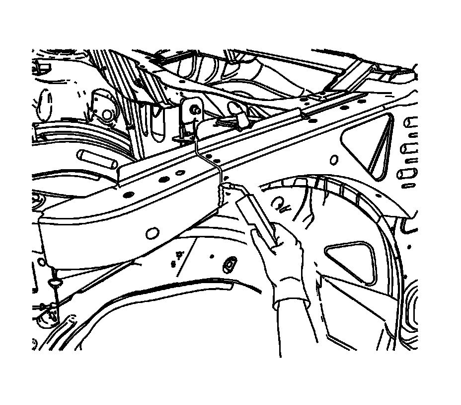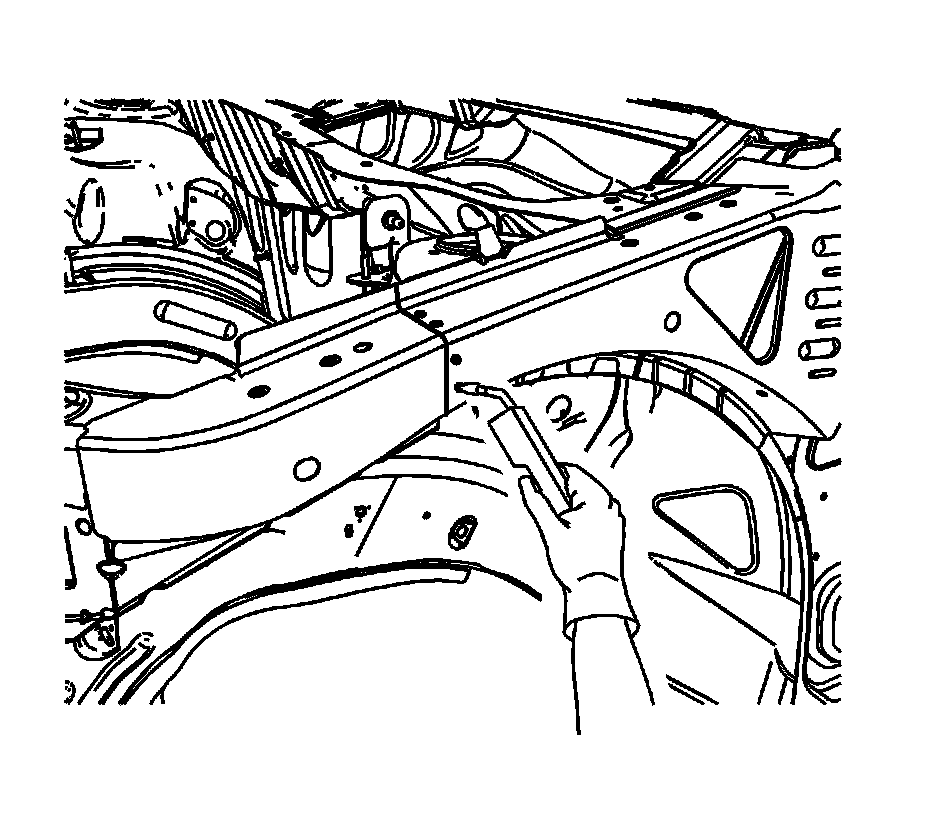 Note: The following steps are necessary to gain access to the spot welds at the tie bar ends. Repeat each step on the opposite end of the tie bar.
