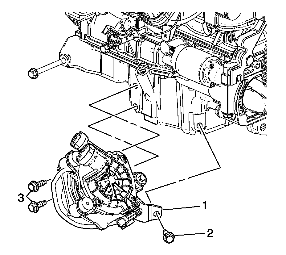 5. Remove the air pump assembly bolts (2, 3).