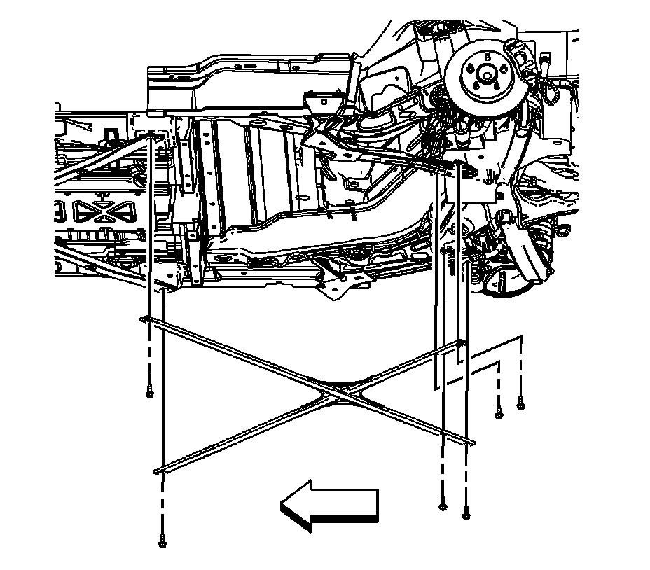 Note: In steps 2-9, use a transmission jack or the help of an assistant to remove the support brace, floor tunnel brace, and the rear crossmember brace from the vehicle.
