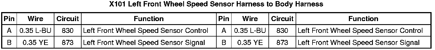 X101 Left Front Wheel Speed Sensor Harness to Body Harness